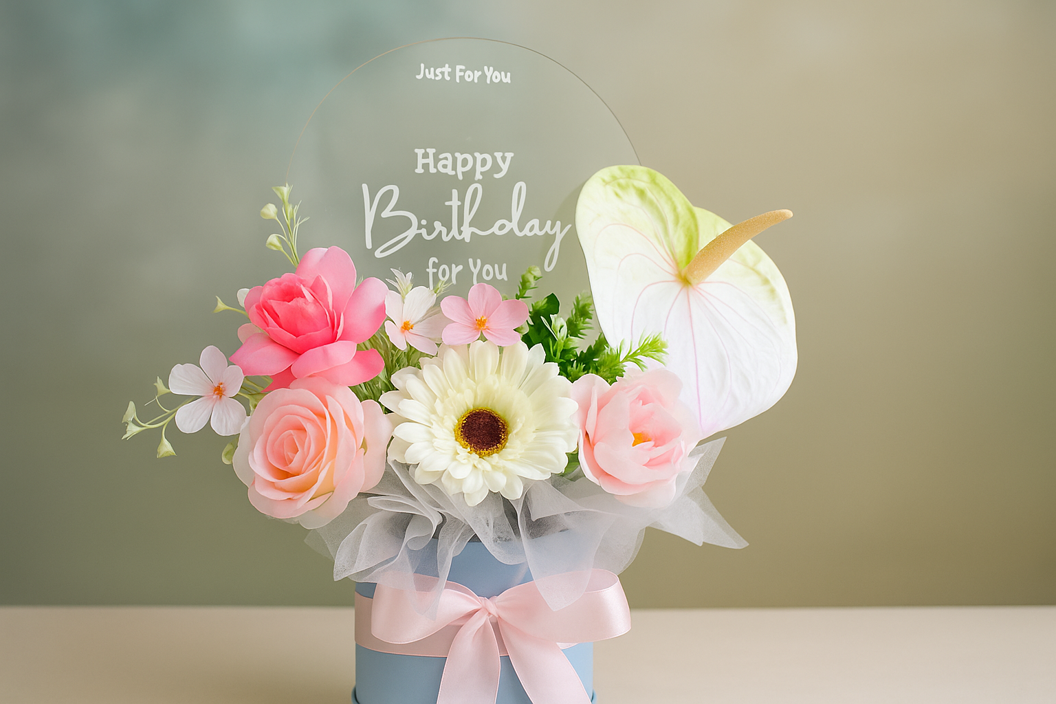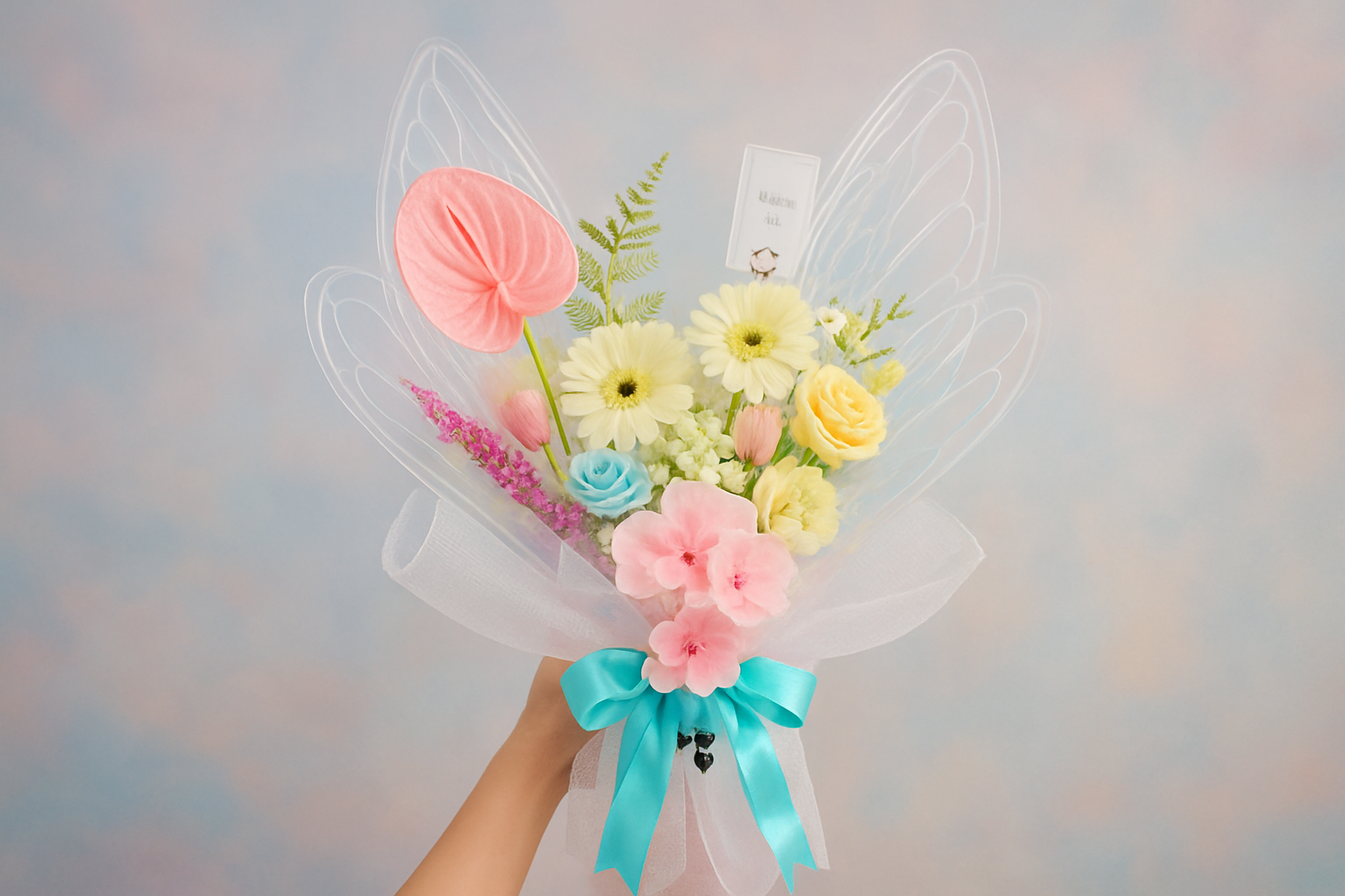 Dibuat dengan harmoni warna pastel yang menenangkan, buket ini melambangkan keanggunan, cinta, dan ketulusan.Cocok untuk hadiah ulang tahun, wisuda, hari spesial, atau sekadar ungkapan kasih yang hangat dan berkesan.